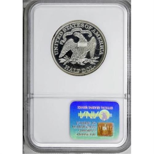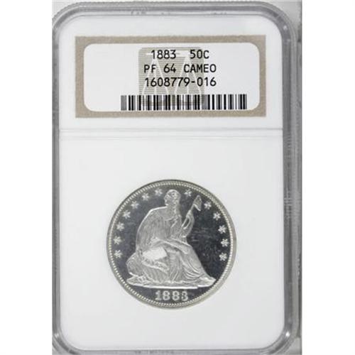<B>1883 50C PR64 Cameo NGC.</B></I> Razor-sharp striking details are noted on the richly frosted devices, and the deeply mirrored fields are flashy and highly reflective. Essentially untoned except for light gold accents near the borders. This late-date Seated half issue consisted of just 8,000 business strikes and 1,039 proofs. Census: 19 in 64, 26 finer (11/07). <BR><BR><b>Shipping:</b> Coins & Currency (<a target="_blank" href="http://www.heritageauctions.com/common/shipping.php">view shipping information</a>)
