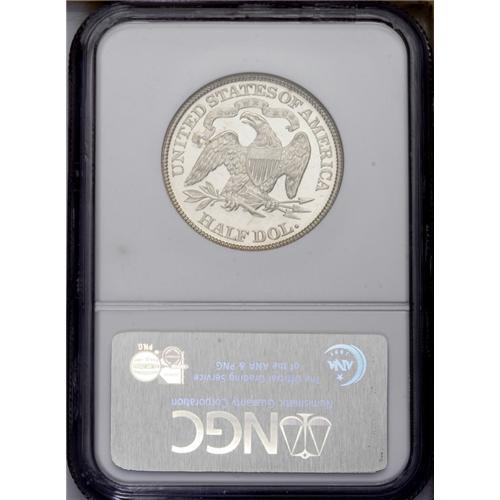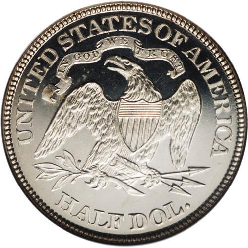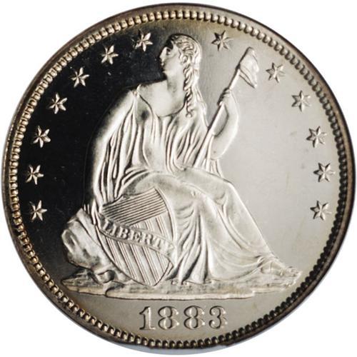 <B>1883<50C> PR66 Cameo NGC.</B></I> An outstanding and easily identifiable proof with deeply mirrored fields and lustrous devices. The surfaces are fully brilliant and stark white with only a subtle trace of pale gold color at the borders. During the 1880s, business strike production of the subsidiary silver coinage was quite limited, and today, proof examples are more plentiful than business strikes. In many years, the business strike coinage was struck from former proof dies and survives today with prooflike fields. Distinguishing between business strikes and proofs has not always been easy, although this example is undoubtedly a proof.