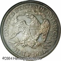 1883 50C PR66 NGC. Lush apple-green, sky-blue, and <B>1883 50C PR66 NGC.</B></I> Lush apple-green, sky-blue, and champagne-rose colors frame the gentle apricot-tinged centers of this flashy and exquisitely struck premium Gem. This outstanding specimen is exceptional in terms of both preservation and eye appeal. Proofs and commercials strikes combined for just 9,039 pieces, since the Philadelphia Mint continued to be burdened with high production quotas of Silver Dollars. <BR><BR><B>Important notice:</B> Heritage usually auctions material at the rate of 200-250 lots per hour. On some occasions eBay Live bid software or the Internet may not be able to keep up with the pace of the auction. We recommend placing a realistic absentee bid now as insurance to avoid disappointment. Occasionally the auctioneer may eliminate or reject an eBay Live bid, and the auctioneer may also reopen a lot after the close of the eBay live bidding (usually because we missed an audience bid), and may reject your bid even if it shows you as the winning bidder. By bidding via eBay Live, you agree that Heritage may award the lot to another bidder at its sole discretion under the circumstances described above or any other reasonable circumstances. Since eBay bids are not shown to us until we open the lot on the floor, we treat those bids just like floor bids. In most cases the floor responds before the eBay bid is presented to us, due to Internet lag time, so for consistency we have made it a policy that floor bids are always considered first over tie eBay live bids. Also please note that all Heritage lots purchased through eBay Live carry a 20% Buyer's Premium. Please make sure you read the Terms and Conditions before you bid. This lot is being auctioned in conjunction with a live floor auction by Heritage Galleries & Auctioneers. All final auction and invoice information will be supplied by Heritage Galleries & Auctioneers, and all other information should be considered preliminary. Lot:6111