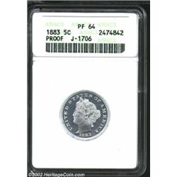 1883 5C Liberty Head Five Cents, Judd-1706, Pollock-1910, R.7, PR64 ANACS. The obverse features Char