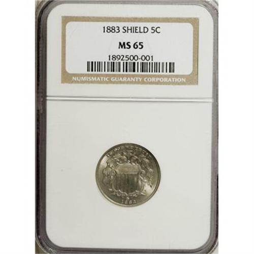 <B>1883 5C MS65 NGC.</B></I> NGC Census: (255/104). PCGS Population (192/111). Mintage: 1,456,919. Numismedia Wsl. Price for NGC/PCGS coin in MS65: $575. (#3813)<BR><BR><b>Shipping:</b> Coins & Currency (<a target="_blank" href="http://www.heritageauctions.com/common/shipping.php">view shipping information</a>)