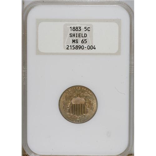 <B>1883 5C MS65 NGC.</B></I> NGC Census: (504/208). PCGS Population (192/111). Mintage: 1,456,919. Numismedia Wsl. Price for NGC/PCGS coin in MS65: $525. (#3813)<BR><BR><b>Shipping:</b> Coins & Currency (<a target="_blank" href="http://www.heritageauctions.com/common/shipping.php">view shipping information</a>)