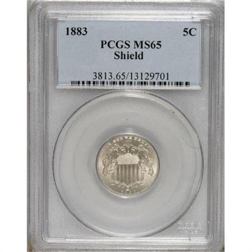 <B>1883 5C MS65 PCGS.</B></I> PCGS Population (192/111). NGC Census: (253/103). Mintage: 1,456,919. Numismedia Wsl. Price for NGC/PCGS coin in MS65: $525. (#3813)<BR><BR><b>Shipping:</b> Coins & Currency (<a target="_blank" href="http://www.heritageauctions.com/common/shipping.php">view shipping information</a>)