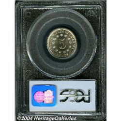 <B>1883<5C> MS65 PCGS.</B></I> This is a Gem quality 1883 Shield nickel, the last of its type. The surfaces are fully brilliant with light gray luster, the fields very slightly prooflike. The date and obverse lettering are weakly defined while most reverse lettering is crisp. <BR><BR><B>Important notice:</B> Heritage usually auctions material at the rate of 200-250 lots per hour. On some occasions eBay Live bid software or the Internet may not be able to keep up with the pace of the auction. We recommend placing a realistic absentee bid now as insurance to avoid disappointment. Occasionally the auctioneer may eliminate or reject an eBay Live bid, and the auctioneer may also reopen a lot after the close of the eBay live bidding (usually because we missed an audience bid), and may reject your bid even if it shows you as the winning bidder. By bidding via eBay Live, you agree that Heritage may award the lot to another bidder at its sole discretion under the circumstances described above or any other reasonable circumstances. Since eBay bids are not shown to us until we open the lot on the floor, we treat those bids just like floor bids. In most cases the floor responds before the eBay bid is presented to us, due to Internet lag time, so for consistency we have made it a policy that floor bids are always considered first over tie eBay live bids. Also please note that all Heritage lots purchased through eBay Live carry a 20% Buyer's Premium. Please make sure you read the Terms and Conditions before you bid.