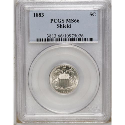 1883 5C MS66 PCGS. This outstanding Shield nickel is b