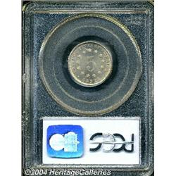 <B>1883<5C> MS66 PCGS.</B></I> Lustrous nickel-gray surfaces display well struck design elements and no mentionable marks to report. Population: 89 in 66, 9 finer (9/04). <BR><BR><B>Important notice:</B> Heritage usually auctions material at the rate of 200-250 lots per hour. On some occasions eBay Live bid software or the Internet may not be able to keep up with the pace of the auction. We recommend placing a realistic absentee bid now as insurance to avoid disappointment. Occasionally the auctioneer may eliminate or reject an eBay Live bid, and the auctioneer may also reopen a lot after the close of the eBay live bidding (usually because we missed an audience bid), and may reject your bid even if it shows you as the winning bidder. By bidding via eBay Live, you agree that Heritage may award the lot to another bidder at its sole discretion under the circumstances described above or any other reasonable circumstances. Since eBay bids are not shown to us until we open the lot on the floor, we treat those bids just like floor bids. In most cases the floor responds before the eBay bid is presented to us, due to Internet lag time, so for consistency we have made it a policy that floor bids are always considered first over tie eBay live bids. Also please note that all Heritage lots purchased through eBay Live carry a 20% Buyer's Premium. Please make sure you read the Terms and Conditions before you bid.