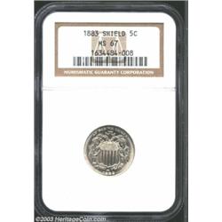 1883 5C MS67 NGC. The final-year 1883 is one of the most frequently encountered Shield Nickels in to