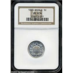<table><tr><td><TABLE cellSpacing=0 cellPadding=0 width="100%" bgColor=#000000 border=0><TBODY> <TR><TD width="100%"><TABLE cellSpacing=1 cellPadding=3 width="100%" border=0><TBODY><TR><TD width="100%" bgColor=#79735c><FONT face=arial color=#ffffff size=3><B>Description</B> </FONT></TD></TR><TR><TD width="100%" bgColor=#ffffff><FONT face=arial size=2><B>1883 5C MS67 <IMG height=10 alt="" src="../graphics/star.gif" width=10 border=0> NGC.</B></I> A well struck and essentially brilliant Superb Gem with flashy semi-prooflike luster and virtually pristine surfaces. The reverse field has numerous mint-made striations. NGC has awarded the eye appeal <IMG height=10 alt="" src="../graphics/star.gif" width=10 border=0> designation to only two 1883 business strike Shield Nickels. </FONT></TD></TR></TBODY></TABLE></TD></TR></TBODY></TABLE><BR><A name=PricesRealized></A><TABLE cellSpacing=0 cellPadding=0 width="100%" bgColor=#000000 border=0><TBODY><TR><TD width="100%"><TABLE cellSpacing=1 cellPadding=3 width="100%" border=0><TBODY><TR><TD width="100%" bgColor=#79735c><A name=PR><FONT face=arial color=#ffffff size=3><B>Previous Prices from Heritage Auctions</B> </FONT></A></TD></TR><TR><TD bgColor=#f6f6ed><TABLE cellSpacing=0 cellPadding=0 width="100%" border=1><TBODY><TR><TD align=middle width="33%"><B>Date</B></TD><TD align=middle width="33%"><B>Service</B></TD><TD align=middle width="33%"><B>Price</B></TD></TR><TR bgColor=whitesmoke><TD width="33%"><B>05/03/2003</B></TD><TD width="33%">NGC</TD><TD width="33%">$3,680.00</TD></TR><TR bgColor=whitesmoke><TD width="33%"><B>01/11/2003</B></TD><TD width="33%">NGC</TD><TD width="33%">$3,105.00</TD></TR><TR bgColor=whitesmoke><TD width="33%"><B>07/30/2002</B></TD><TD width="33%">NGC</TD><TD width="33%">$3,335.00</TD></TR><TR bgColor=whitesmoke><TD width="33%"><B>08/08/2001</B></TD><TD width="33%">NGC</TD><TD width="33%">$3,105.00</TD></TR><TR bgColor=whitesmoke><TD width="33%"><B>01/09/2002</B></TD><TD width="33%">NGC</TD><TD width="33%">$3,335.00</TD></TR></TBODY></TABLE></TD></TR><TR><TD bgColor=#ffffff><FONT face=arial size=1 ?>PLEASE NOTE: All prices realized reflect the final hammer price PLUS the buyer's premium in auctions that charge a buyer's premium. Each item has a notation at the top of the listing indicating whether that lot included a buyer's premium. Example: A item that sells with a final hammer price of $100 and a 20% buyer's premium will display with a price realized of $120. All information listed is intended to be as accurate as possible, but errors are possible. Please use this guide carefully and inform us of any inaccuracies. </FONT></TD></TR></TBODY></TABLE></TD></TR></TBODY></TABLE><BR><TABLE cellSpacing=0 cellPadding=0 width="100%" bgColor=#000000 border=0><TBODY><TR><TD width="100%"><TABLE cellSpacing=1 cellPadding=3 width="100%" border=0><TBODY><TR><TD width="100%" bgColor=#79735c colSpan=6><FONT face=arial color=#ffffff size=3><B>Price Guide*</B> </FONT></TD></TR><TR bgColor=#f6f6ed><TD align=middle><B>Grade</B> </TD><TD align=middle><B>Coin World<BR>(Trends)</B> </TD><TD align=middle><B>Numismedia<BR>Retail</B> </TD><TD align=middle><B>Numismedia<BR>Wholesale</B> </TD><TD align=middle><B>Coin<BR>Universe</B> </TD><TD align=middle><B>Heritage<BR>Value Index</B> </TD></TR><TR bgColor=#ffffff><TD align=middle>66</TD><TD align=right>$1,500.00</TD><TD align=right>---</TD><TD align=right>$1,040.00</TD><TD align=right>$1,650.00</TD><TD align=right>$1,118.33</TD></TR><TR style="FONT-WEIGHT: bold" bgColor=#cccfdd><TD align=middle>67</TD><TD align=right>---</TD><TD align=right>---</TD><TD align=right>$3,875.00</TD><TD align=right>$7,700.00</TD><TD align=right>$5,695.00</TD></TR><TR bgColor=#ffffff><TD align=middle>68</TD><TD align=right>---</TD><TD align=right>---</TD><TD align=right>---</TD><TD align=right>---</TD><TD align=right>---</TD></TR><TR bgColor=#ffffff><TD colSpan=6><FONT size=1>*All information listed is intended to be as accurate as possible, but errors are possible. No item may be returned or refused based on this information which is provided as a service to our customers. You should contact each pricing source directly to determine the accuracy of this information. </FONT></TD></TR></TBODY></TABLE></TD></TR></TBODY></TABLE><BR><TABLE cellSpacing=0 cellPadding=0 width="100%" bgColor=#000000 border=0><TBODY><TR><TD width="100%"><TABLE cellSpacing=1 cellPadding=3 width="100%" border=0><TBODY><TR><TD width="100%" bgColor=#79735c><FONT face=arial color=#ffffff size=3><B>Population Guide</B> </FONT></TD></TR><TR bgColor=#ffffff><TD align=middle><!-- Begin Output of Population Grid--><TABLE cellSpacing=0 cellPadding=0 width="100%" border=0><TBODY><TR><TD vAlign=center><TABLE cellSpacing=0 width="100%" border=1 cellsadding="3"><TBODY><TR><TD vAlign=center><TABLE cellSpacing=0 cellPadding=3 width="100%" border=1><TBODY><TR><TD vAlign=center align=middle bgColor=#f0f1e8 colSpan=2 <CENTER><FONT face=Arial size=2><B>PCGS Pop </B></FONT><CENTER></CENTER></TD><TD vAlign=center align=middle bgColor=#f0f1e8 colSpan=2><CENTER><FONT face=Arial size=2><B>NGC Pop</B></CENTER></FONT></TD></TR><TR><TD vAlign=center><FONT face=Arial size=2>(67)</FONT> </TD><TD vAlign=center align=right><FONT face=Arial size=2>8</FONT> </TD><TD vAlign=center><FONT face=Arial size=2>(67)</FONT> </TD><TD vAlign=center align=right><FONT face=Arial size=2>13</FONT> </TD></TR><TR><TD vAlign=center><FONT face=Arial size=2>(>67)</FONT> </TD><TD vAlign=center align=right><FONT face=Arial size=2>0</FONT> </TD><TD vAlign=center><FONT face=Arial size=2>(>67)</FONT> </TD><TD vAlign=center align=right><FONT face=Arial size=2>0</FONT> </TD></TR></TBODY></TABLE></TD></TR></TBODY></TABLE></TD></TR></TBODY></TABLE><!-- End Output of Population Grid--></TD></TR></TBODY></TABLE></TD></TR></TBODY></TABLE><BR><TABLE cellSpacing=0 cellPadding=0 width="100%" bgColor=#000000 border=0><TBODY><TR> Important notice: Heritage usually auctions material at the rate of 200-250 lots per hou
