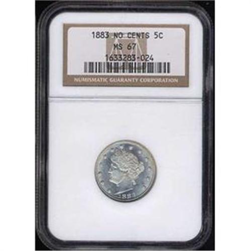 1883 5C NO CENT Nickel NGC MS67 Coin