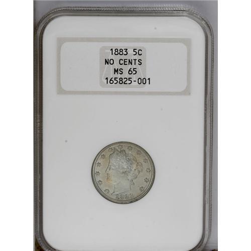 1883 5C No Cents MS65 NGC. A remarkable example from a 1883[5C] No Cents MS65 NGC.