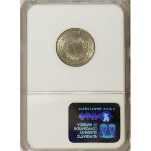 <B>1883 5C No Cents MS65 NGC.</B></I> NGC Census: (1628/449). PCGS Population (1155/330). Mintage: 5,479,519. Numismedia Wsl. Price for NGC/PCGS coin in MS65: $220. (#3841)<BR><BR><B>Coin Engraver:</B> Charles E. Barber<BR><BR><b>Shipping:</b> Coins & Currency (<a target="_blank" href="http://www.heritageauctions.com/common/shipping.php">view shipping information</a>)
