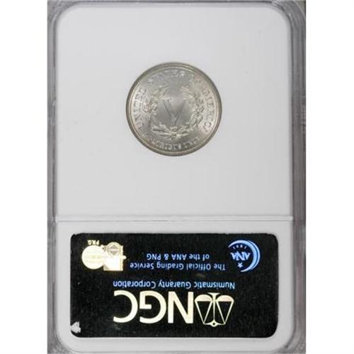 <B>1883 5C No Cents MS65 NGC.</B></I> NGC Census: (1633/451). PCGS Population (1171/343). Mintage: 5,479,519. Numismedia Wsl. Price for NGC/PCGS coin in MS65: $220. (#3841)<BR><BR><B>Coin Engraver:</B> Charles E. Barber<BR><BR><b>Shipping:</b> Coins & Currency (<a target="_blank" href="http://www.heritageauctions.com/common/shipping.php">view shipping information</a>)