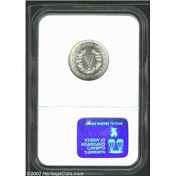 1883 5C No Cents MS66 * NGC. A brilliant and lustrous Gem with mildly prooflike fields. Nicely struck and carefully preserved. The reverse border has several lengthy and heavy die cracks, as made. Important notice: We expect to be auctioning lots at the rate of 200-250 per hour. Sometimes eBay Premier live bid software cannot keep up with that pace, so we strongly recommend that you place a realistic proxy bid now as insurance to avoid disappointment. Also please note that all Heritage/CAA lots purchased through eBay Premier carry a 20% Buyer's Premium. Please make sure you read the Terms and Conditions.