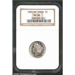 1883 5C No Cents MS66 NGC. Mintage: 5,479,...