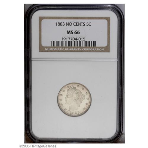 1883 5C No Cents MS66 NGC. This lovely nickel displays 1883[5C] No Cents MS66 NGC.