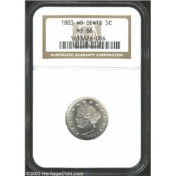 1883 5C No Cents MS66 NGC. Well struck and lustrous, the devices are sharp and there are no marks wo