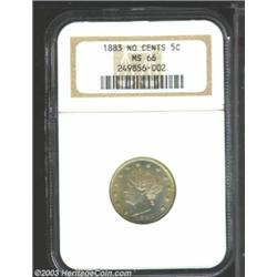 <TABLE cellSpacing=0 cellPadding=0 width="100%" bgColor=#000000 border=0><TBODY><TR><TD width="100%"><TABLE cellSpacing=1 cellPadding=3 width="100%" border=0><TBODY><TR><TD width="100%" bgColor=#79735c><FONT face=arial color=#ffffff size=3><B>Description</B> </FONT></TD></TR><TR><TD width="100%" bgColor=#ffffff><FONT face=arial size=2><B>1883 5C No Cents MS66 NGC.</B></I> Exceptionally lustrous for this one-year type, and framed in variegated, attractive golden-amber patina. The surfaces are very clean and only show a couple of minor contact marks, near the obverse center. </FONT></TD></TR></TBODY></TABLE></TD></TR></TBODY></TABLE><BR><A name=PricesRealized></A><TABLE cellSpacing=0 cellPadding=0 width="100%" bgColor=#000000 border=0><TBODY><TR><TD width="100%"><TABLE cellSpacing=1 cellPadding=3 width="100%" border=0><TBODY><TR><TD width="100%" bgColor=#79735c><A name=PR><FONT face=arial color=#ffffff size=3><B>Previous Prices from Heritage Auctions</B> </FONT></A></TD></TR><TR><TD bgColor=#f6f6ed><TABLE cellSpacing=0 cellPadding=0 width="100%" border=1><TBODY><TR><TD align=middle width="33%"><B>Date</B></TD><TD align=middle width="33%"><B>Service</B></TD><TD align=middle width="33%"><B>Price</B></TD></TR><TR bgColor=whitesmoke><TD width="33%"><B>07/30/2002</B></TD><TD width="33%">NGC</TD><TD width="33%">$575.00</TD></TR><TR bgColor=whitesmoke><TD width="33%"><B>05/07/2002</B></TD><TD width="33%">NGC</TD><TD width="33%">$552.00</TD></TR><TR bgColor=whitesmoke><TD width="33%"><B>05/07/2002</B></TD><TD width="33%">NGC</TD><TD width="33%">$552.00</TD></TR><TR bgColor=whitesmoke><TD width="33%"><B>03/05/2002</B></TD><TD width="33%">NGC</TD><TD width="33%">$483.00</TD></TR><TR bgColor=whitesmoke><TD width="33%"><B>02/23/2002</B></TD><TD width="33%">NGC</TD><TD width="33%">$517.50</TD></TR><TR bgColor=whitesmoke><TD width="33%"><B>02/23/2002</B></TD><TD width="33%">NGC</TD><TD width="33%">$517.50</TD></TR><TR bgColor=whitesmoke><TD width="33%"><B>06/03/1998</B></TD><TD width="33%">NGC</TD><TD width="33%">$467.50</TD></TR><TR bgColor=whitesmoke><TD width="33%"><B>08/02/1997</B></TD><TD width="33%">NGC</TD><TD width="33%">$431.25</TD></TR><TR bgColor=whitesmoke><TD width="33%"><B>08/02/1997</B></TD><TD width="33%">NGC</TD><TD width="33%">$431.25</TD></TR><TR bgColor=whitesmoke><TD width="33%"><B>03/13/1999</B></TD><TD width="33%">NGC</TD><TD width="33%">$431.25</TD></TR><TR bgColor=whitesmoke><TD width="33%"><B>05/16/2000</B></TD><TD width="33%">NGC</TD><TD width="33%">$525.00</TD></TR><TR bgColor=whitesmoke><TD width="33%"><B>05/16/2000</B></TD><TD width="33%">NGC</TD><TD width="33%">$525.00</TD></TR><TR bgColor=whitesmoke><TD width="33%"><B>05/30/2000</B></TD><TD width="33%">NGC</TD><TD width="33%">$340.00</TD></TR><TR bgColor=whitesmoke><TD width="33%"><B>11/18/2000</B></TD><TD width="33%">NGC</TD><TD width="33%">$327.75</TD></TR><TR bgColor=whitesmoke><TD width="33%"><B>11/18/2000</B></TD><TD width="33%">NGC</TD><TD width="33%">$327.75</TD></TR><TR bgColor=whitesmoke><TD width="33%"><B>06/07/1997</B></TD><TD width="33%">NGC</TD><TD width="33%">$550.00</TD></TR><TR bgColor=whitesmoke><TD width="33%"><B>02/24/1995</B></TD><TD width="33%">NGC</TD><TD width="33%">$770.00</TD></TR><TR bgColor=whitesmoke><TD width="33%"><B>02/24/1995</B></TD><TD width="33%">NGC</TD><TD width="33%">$770.00</TD></TR><TR bgColor=whitesmoke><TD width="33%"><B>03/01/2003</B></TD><TD width="33%">PCGS</TD><TD width="33%">$632.50</TD></TR><TR bgColor=whitesmoke><TD width="33%"><B>07/29/2003</B></TD><TD width="33%">PCGS</TD><TD width="33%">$632.50</TD></TR><TR bgColor=whitesmoke><TD width="33%"><B>07/29/2003</B></TD><TD width="33%">PCGS</TD><TD width="33%">$632.50</TD></TR><TR bgColor=whitesmoke><TD width="33%"><B>07/29/2003</B></TD><TD width="33%">PCGS</TD><TD width="33%">$632.50</TD></TR><TR bgColor=whitesmoke><TD width="33%"><B>05/03/2003</B></TD><TD width="33%">PCGS</TD><TD width="33%">$603.75</TD></TR><TR bgColor=whitesmoke><TD width="33%"><B>05/03/2003</B></TD><TD width="33%">PCGS</TD><TD width="33%">$603.75</TD></TR><TR bgColor=whitesmoke><TD width="33%"><B>06/24/2003</B></TD><TD width="33%">PCGS</TD><TD width="33%">$632.50</TD></TR><TR bgColor=whitesmoke><TD width="33%"><B>06/24/2003</B></TD><TD width="33%">PCGS</TD><TD width="33%">$603.75</TD></TR><TR bgColor=whitesmoke><TD width="33%"><B>06/24/2003</B></TD><TD width="33%">PCGS</TD><TD width="33%">$603.75</TD></TR><TR bgColor=whitesmoke><TD width="33%"><B>12/31/2002</B></TD><TD width="33%">PCGS</TD><TD width="33%">$617.55</TD></TR><TR bgColor=whitesmoke><TD width="33%"><B>07/25/2000</B></TD><TD width="33%">PCGS</TD><TD width="33%">$650.00</TD></TR><TR bgColor=whitesmoke><TD width="33%"><B>07/25/2000</B></TD><TD width="33%">PCGS</TD><TD width="33%">$650.00</TD></TR><TR bgColor=whitesmoke><TD width="33%"><B>08/05/2001</B></TD><TD width="33%">PCGS</TD><TD width="33%">$747.50</TD></TR><TR bgColor=whitesmoke><TD width="33%"><B>06/01/1997</B></TD><TD width="33%">PCGS</TD><TD width="33%">$880.00</TD></TR><TR bgColor=whitesmoke><TD width="33%"><B>06/01/1997</B></TD><TD width="33%">PCGS</TD><TD width="33%">$880.00</TD></TR><TR bgColor=whitesmoke><TD width="33%"><B>02/01/1998</B></TD><TD width="33%">PCGS</TD><TD width="33%">$660.00</TD></TR><TR bgColor=whitesmoke><TD width="33%"><B>10/01/1998</B></TD><TD width="33%">PCGS</TD><TD width="33%">$687.00</TD></TR><TR bgColor=whitesmoke><TD width="33%"><B>10/01/1998</B></TD><TD width="33%">PCGS</TD><TD width="33%">$687.00</TD></TR><TR bgColor=whitesmoke><TD width="33%"><B>01/01/1995</B></TD><TD width="33%">PCGS</TD><TD width="33%">$825.00</TD></TR><TR bgColor=whitesmoke><TD width="33%"><B>01/05/2001</B></TD><TD width="33%">PCGS</TD><TD width="33%">$603.75</TD></TR><TR bgColor=whitesmoke><TD width="33%"><B>01/05/2001</B></TD><TD width="33%">PCGS</TD><TD width="33%">$603.75</TD></TR><TR bgColor=whitesmoke><TD width="33%"><B>03/22/1997</B></TD><TD width="33%">PCGS</TD><TD width="33%">$1,150.00</TD></TR><TR bgColor=whitesmoke><TD width
