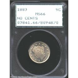 1883 5C No Cents MS66 PCGS. Rich silver-gray patina. A lustrous and mildly prooflike Gem that has a.