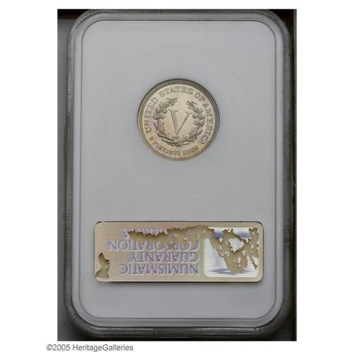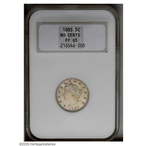 <B>1883<5C> No Cents PR65 NGC.</B></I> Pastel multicolored toning adheres to bright surfaces devoid of mentionable contact marks, and displays sharply struck motifs. A small fleck in the lower right (facing) obverse quadrant is mentioned for accuracy.