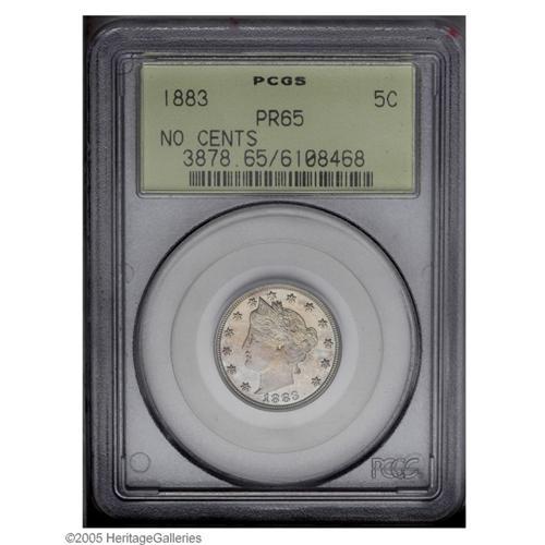 1883 5C No Cents PR65 PCGS. Sharply detailed, except f 1883[5C] No Cents PR65 PCGS.