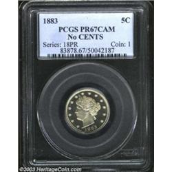 1883 5C No Cents PR67 Cameo PCGS. While it may be a commonplace to call No Cents Nickels "common," i