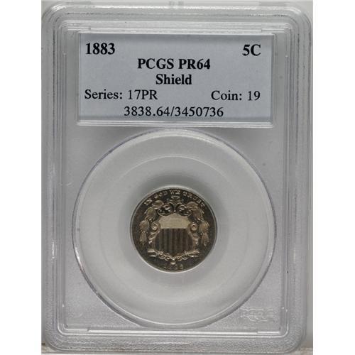 <B>1883 5C PR64 PCGS.</B></I> PCGS Population (339/585). NGC Census: (239/570). Mintage: 5,419. Numismedia Wsl. Price: $332. (#3838)<BR><BR><b>Shipping:</b> Coins & Currency (<a target="_blank" href="http://www.heritageauctions.com/common/shipping.php">view shipping information</a>)
