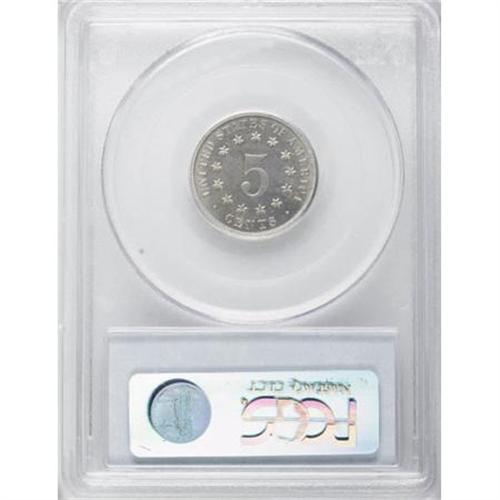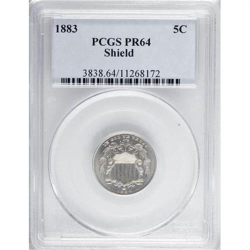 <B>1883 5C PR64 PCGS.</B></I> PCGS Population (336/590). NGC Census: (240/573). Mintage: 5,419. Numismedia Wsl. Price for NGC/PCGS coin in PR64: $340. (#3838)<BR><BR><B>Coin Engraver:</B> James B. Longacre<BR><BR><b>Shipping:</b> Coins & Currency (<a target="_blank" href="http://www.heritageauctions.com/common/shipping.php">view shipping information</a>\)