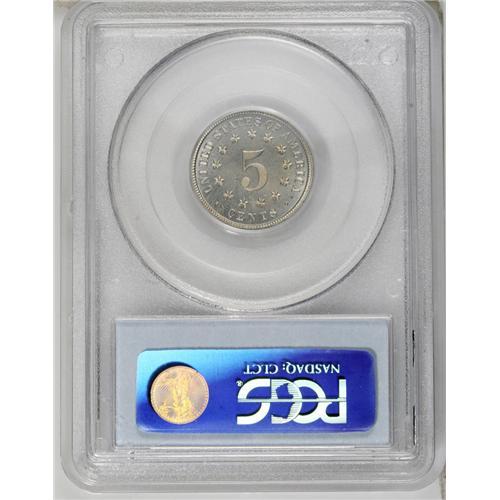 <B>1883 5C PR65 Cameo PCGS.</B></I> A well struck final-year Gem with noticeable contrast between the devices and field. Medium tan and sky-blue graces the reverse. Each side has a few distributed russet flecks.<BR><BR><b>Shipping:</b> Coin/Currency (<a target="_blank" href="http://www.heritageauctions.com/common/shipping.php">view shipping information</a>)