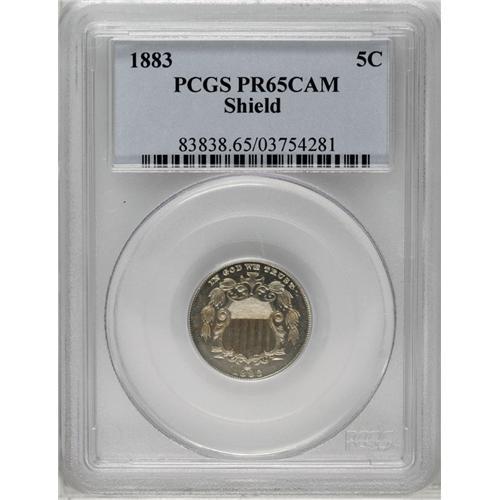 1883 5C PR65 Cameo PCGS. Highly reflective with a smid 1883[5C] PR65 Cameo PCGS.