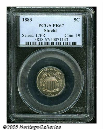 <B>1883<5C> PR67 PCGS.</B></I> Impressive example with wonderful surfaces and detail and very light rose-gold tonality.