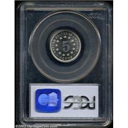 <table><tr><td><TABLE cellSpacing=0 cellPadding=0 width="100%" bgColor=#000000 border=0><TBODY> <TR><TD width="100%"><TABLE cellSpacing=1 cellPadding=3 width="100%" border=0><TBODY><TR><TD width="100%" bgColor=#79735c><FONT face=arial color=#ffffff size=3><B>Description</B> </FONT></TD></TR><TR><TD width="100%" bgColor=#ffffff><FONT face=arial size=2><B>1883 5C Shield PR66 Cameo PCGS.</B></I> A razor-sharp Gem with bright, untoned surfaces and deeply reflective fields. The devices are nicely frosted and sharply contrasted, creating a lovely black and white effect. The coin seems unmarked, but there is a small planchet flaw (as struck) on the reverse, within the lower loop of the large number 5. A splendidly attractive and technically impressive specimen. Population: 13 in 66, 3 finer (8/03).<BR><I>From The Jones Beach Estate, Part II.</B></I> </FONT></TD></TR></TBODY></TABLE></TD></TR></TBODY></TABLE><BR><A name=PricesRealized></A><TABLE cellSpacing=0 cellPadding=0 width="100%" bgColor=#000000 border=0><TBODY><TR><TD width="100%"><TABLE cellSpacing=1 cellPadding=3 width="100%" border=0><TBODY><TR><TD width="100%" bgColor=#79735c><A name=PR><FONT face=arial color=#ffffff size=3><B>Previous Prices from Heritage Auctions</B> </FONT></A></TD></TR><TR><TD bgColor=#f6f6ed><TABLE cellSpacing=0 cellPadding=0 width="100%" border=1><TBODY><TR><TD align=middle width="33%"><B>Date</B></TD><TD align=middle width="33%"><B>Service</B></TD><TD align=middle width="33%"><B>Price</B></TD></TR><TR bgColor=whitesmoke><TD width="33%"><B>09/30/2003</B></TD><TD width="33%">PCGS</TD><TD width="33%">$805.00</TD></TR><TR bgColor=whitesmoke><TD width="33%"><B>07/01/2003</B></TD><TD width="33%">PCGS</TD><TD width="33%">$776.25</TD></TR><TR bgColor=whitesmoke><TD width="33%"><B>11/12/2002</B></TD><TD width="33%">PCGS</TD><TD width="33%">$747.50</TD></TR><TR bgColor=whitesmoke><TD width="33%"><B>05/07/2002</B></TD><TD width="33%">NGC</TD><TD width="33%">$718.75</TD></TR><TR bgColor=whitesmoke><TD width="33%"><B>09/25/2001</B></TD><TD width="33%">PCGS</TD><TD width="33%">$800.00</TD></TR><TR bgColor=whitesmoke><TD width="33%"><B>07/29/2003</B></TD><TD width="33%">PCGS</TD><TD width="33%">$833.75</TD></TR><TR bgColor=whitesmoke><TD width="33%"><B>05/03/2003</B></TD><TD width="33%">PCGS</TD><TD width="33%">$632.50</TD></TR><TR bgColor=whitesmoke><TD width="33%"><B>08/08/2001</B></TD><TD width="33%">PCGS</TD><TD width="33%">$1,150.00</TD></TR></TBODY></TABLE></TD></TR><TR><TD bgColor=#ffffff><FONT face=arial size=1 ?>PLEASE NOTE: All prices realized reflect the final hammer price PLUS the buyer's premium in auctions that charge a buyer's premium. Each item has a notation at the top of the listing indicating whether that lot included a buyer's premium. Example: A item that sells with a final hammer price of $100 and a 20% buyer's premium will display with a price realized of $120. All information listed is intended to be as accurate as possible, but errors are possible. Please use this guide carefully and inform us of any inaccuracies. </FONT></TD></TR></TBODY></TABLE></TD></TR></TBODY></TABLE><BR><TABLE cellSpacing=0 cellPadding=0 width="100%" bgColor=#000000 border=0><TBODY><TR><TD width="100%"><TABLE cellSpacing=1 cellPadding=3 width="100%" border=0><TBODY><TR><TD width="100%" bgColor=#79735c colSpan=6><FONT face=arial color=#ffffff size=3><B>Price Guide*</B> </FONT></TD></TR><TR bgColor=#f6f6ed><TD align=middle><B>Grade</B> </TD><TD align=middle><B>Coin World<BR>(Trends)</B> </TD><TD align=middle><B>Numismedia<BR>Retail</B> </TD><TD align=middle><B>Numismedia<BR>Wholesale</B> </TD><TD align=middle><B>Coin<BR>Universe</B> </TD><TD align=middle><B>Heritage<BR>Value Index</B> </TD></TR><TR bgColor=#ffffff><TD align=middle>65</TD><TD align=right>---</TD><TD align=right>---</TD><TD align=right>---</TD><TD align=right>---</TD><TD align=right>$453.75</TD></TR><TR style="FONT-WEIGHT: bold" bgColor=#cccfdd><TD align=middle>66</TD><TD align=right>---</TD><TD align=right>---</TD><TD align=right>---</TD><TD align=right>---</TD><TD align=right>---</TD></TR><TR bgColor=#ffffff><TD align=middle>67</TD><TD align=right>---</TD><TD align=right>---</TD><TD align=right>---</TD><TD align=right>---</TD><TD align=right>---</TD></TR><TR bgColor=#ffffff><TD colSpan=6><FONT size=1>*All information listed is intended to be as accurate as possible, but errors are possible. No item may be returned or refused based on this information which is provided as a service to our customers. You should contact each pricing source directly to determine the accuracy of this information. </FONT></TD></TR></TBODY></TABLE></TD></TR></TBODY></TABLE><BR><TABLE cellSpacing=0 cellPadding=0 width="100%" bgColor=#000000 border=0><TBODY><TR><TD width="100%"><TABLE cellSpacing=1 cellPadding=3 width="100%" border=0><TBODY><TR><TD width="100%" bgColor=#79735c><FONT face=arial color=#ffffff size=3><B>Population Guide</B> </FONT></TD></TR><TR bgColor=#ffffff><TD align=middle><!-- Begin Output of Population Grid--><TABLE cellSpacing=0 cellPadding=0 width="100%" border=0><TBODY><TR><TD vAlign=center><TABLE cellSpacing=0 width="100%" border=1 cellsadding="3"><TBODY><TR><TD vAlign=center><TABLE cellSpacing=0 cellPadding=3 width="100%" border=1><TBODY><TR><TD vAlign=center align=middle bgColor=#f0f1e8 colSpan=2 <CENTER><FONT face=Arial size=2><B>PCGS Pop </B></FONT><CENTER></CENTER></TD><TD vAlign=center align=middle bgColor=#f0f1e8 colSpan=2><CENTER><FONT face=Arial size=2><B>NGC Pop</B></CENTER></FONT></TD></TR><TR><TD vAlign=center><FONT face=Arial size=2>(66)</FONT> </TD><TD vAlign=center align=right><FONT face=Arial size=2>25</FONT> </TD><TD vAlign=center><FONT face=Arial size=2>(66)</FONT> </TD><TD vAlign=center align=right><FONT face=Arial size=2>8</FONT> </TD></TR><TR><TD vAlign=center><FONT face=Arial size=2>(>66)</FONT> </TD><TD vAlign=center align=right><FONT face=Arial size=2>5</FONT> </TD><TD vAlign=center><FONT face=Arial size=2>(>66)</FONT> </TD><TD vAlign=center 