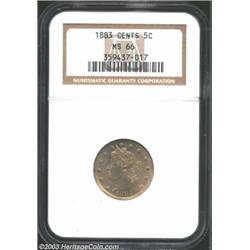 1883 5C With Cents MS66 NGC. Fully lustrous with bright cartwheel effects and virtually no contact m