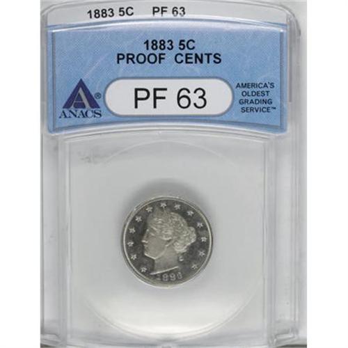 <B>1883 5C With Cents PR63 PCGS.</B></I> PCGS Population (84/494). NGC Census: (53/435). Mintage: 6,783. Numismedia Wsl. Price for NGC/PCGS coin in PR63: $210. (#3881)<BR><BR><B>Coin Engraver:</B> Charles E. Barber<BR><BR><b>Shipping:</b> Coins & Currency (<a target="_blank" href="http://www.heritageauctions.com/common/shipping.php">view shipping information</a>)