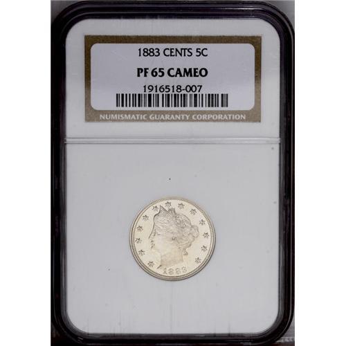 1883 5C With Cents PR65 Cameo NGC. A brightly mirrored 1883[5C] With Cents PR65 Cameo NGC.