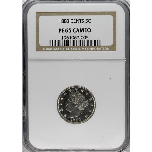 1883 5C With Cents PR65 Cameo NGC. NGC Census: (62