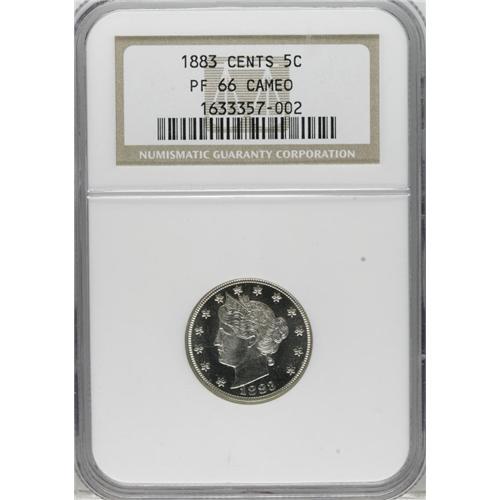 1883 5C With Cents PR66 Cameo NGC. Dynamic white-on-bl