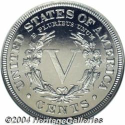 <table><tr><td><table><tr><td>1883 5C With Cents PR66 Deep Cameo NGC. The finer of two Deep Cameo specimens in the sale, a rather unusual offering since only a handful of With Cents Nickels have been certified with the "Ultra Cameo" designation by NGC. Brightly mirrored, untoned surfaces have expectantly bold contrast and only a wispy blemish in front of Liberty's chin seems to preclude an even loftier rating. Population: 2 in 66, 1 finer (3/04). <BR><BR><B>Important notice:</B> Heritage usually auctions material at the rate of 200-250 lots per hour. On some occasions eBay Live bid software or the Internet may not be able to keep up with the pace of the auction. We recommend placing a realistic absentee bid now as insurance to avoid disappointment. Occasionally the auctioneer may eliminate or reject an eBay Live bid, and the auctioneer may also reopen a lot after the close of the eBay live bidding (usually because we missed an audience bid), and may reject your bid even if it shows you as the winning bidder. By bidding via eBay Live, you agree that Heritage may award the lot to another bidder at its sole discretion under the circumstances described above or any other reasonable circumstances. Since eBay bids are not shown to us until we open the lot on the floor, we treat those bids just like floor bids. In most cases the floor responds before the eBay bid is presented to us, due to Internet lag time, so for consistency we have made it a policy that floor bids are always considered first over tie eBay live bids. Also please note that all Heritage lots purchased through eBay Live carry a 20% Buyer's Premium. Please make sure you read the Terms and Conditions before you bid. <BR><BR><B>IMPORTANT ANNOUNCEMENT ABOUT RESERVES:</B> Heritage now divulges all reserves on its web site 7 days before every auction. If you want to know whether the reserve on this lot has been met, and if not, what the reserve amount is, please visit this lot page on the HeritageCoin.com web site, or email: bid@HeritageGalleries.com </span></font></td></tr></table></td></tr></table>