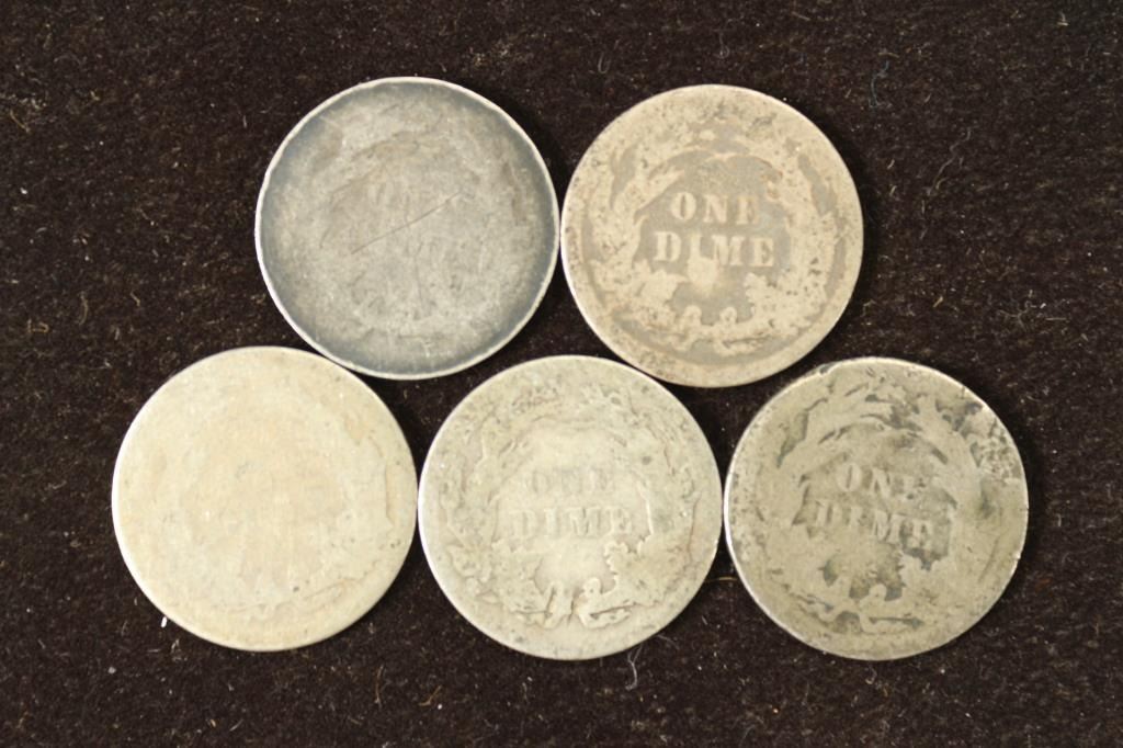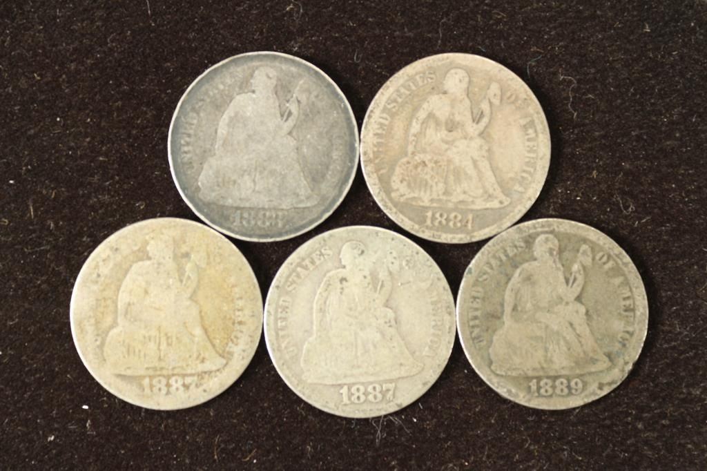 1883,84,2-87 & 1889 SEATED LIBERTY DIMES