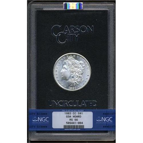 <B>1883-CC $1 MS66 NGC.</B></I> VAM-4. The date appears repunched. Pervasive luster sweeps the gorgeously smooth surfaces of this nicely struck Premium Gem. Both sides have only a whisper of almond-gold patina.<BR><BR><b>Shipping:</b> Coins & Currency (<a target="_blank" href="http://www.heritageauctions.com/common/shipping.php">view shipping information</a>)