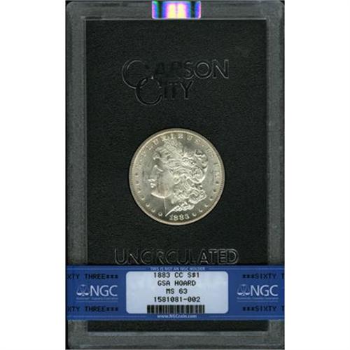 <B>1883-CC $1 MS63 NGC.</B></I> NGC Census: (2381/8795). PCGS Population (6568/18798). Mintage: 1,204,000. Numismedia Wsl. Price for NGC/PCGS coin in MS63: $183. (#7144)<BR><BR><B>Coin Engraver:</B> George T. Morgan<BR><BR><b>Shipping:</b> Coins & Currency (<a target="_blank" href="http://www.heritageauctions.com/common/shipping.php">view shipping information</a>)