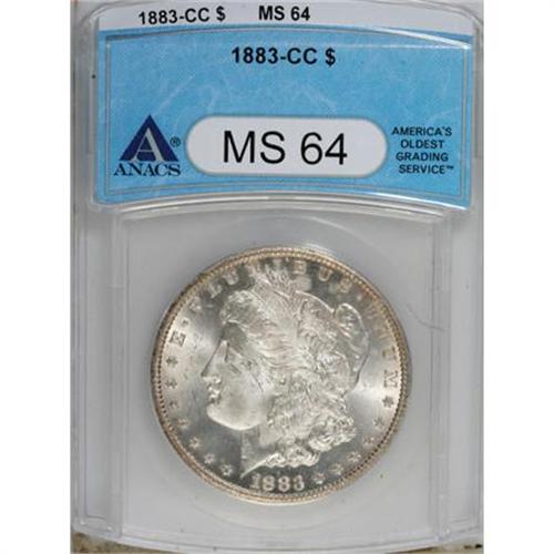 <B>1883-CC $1 MS64 ANACS.</B></I> NGC Census: (4596/4136). PCGS Population (10798/7939). Mintage: 1,204,000. Numismedia Wsl. Price for NGC/PCGS coin in MS64: $200. (#7144)<BR><BR><B>Coin Engraver:</B> George T. Morgan<BR><BR><b>Shipping:</b> Coins & Currency (<a target="_blank" href="http://www.heritageauctions.com/common/shipping.php">view shipping information</a>)