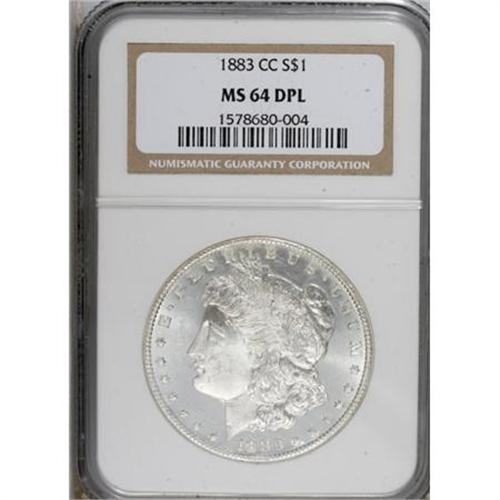 <B>1883-CC $1 MS64 Deep Mirror Prooflike NGC.</B></I> Fully struck with dazzling mint brilliance. The devices are heavily frosted and present a strong contrast against the deeply reflective mirrors in the fields.<BR><BR><b>Shipping:</b> Coins & Currency (<a target="_blank" href="http://www.heritageauctions.com/common/shipping.php">view shipping information</a>)