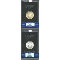 1883-CC $1 MS64 NGC,. boldly struck and enhanced by a blush of golden-orange obverse color; and a...