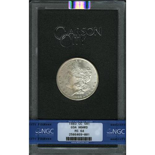 <B>1883-CC $1 MS64 NGC.</B></I> NGC Census: (4627/4168). PCGS Population (10833/7965). Mintage: 1,204,000. Numismedia Wsl. Price for NGC/PCGS coin in MS64: $200. (#7144)<BR><BR><B>Coin Engraver:</B> George T. Morgan<BR><BR><b>Shipping:</b> Coins & Currency (<a target="_blank" href="http://www.heritageauctions.com/common/shipping.php">view shipping information</a>)