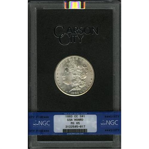 <B>1883-CC $1 MS64 NGC.</B></I> The Box and Certificate of Issue are included.<BR>NGC Census: (4740/4212). PCGS Population (10954/8055). Mintage: 1,204,000. Numismedia Wsl. Price for NGC/PCGS coin in MS64: $200. (#7144)<BR><BR><B>Coin Engraver:</B> George T. Morgan<BR><BR><b>Shipping:</b> Coins & Currency (<a target="_blank" href="http://www.heritageauctions.com/common/shipping.php">view shipping information</a>)