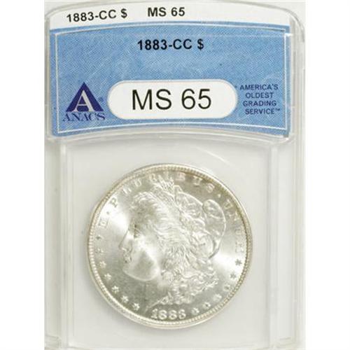 <B>1883-CC $1 MS65 ANACS.</B></I> NGC Census: (3322/846). PCGS Population (6329/1654). Mintage: 1,204,000. Numismedia Wsl. Price for NGC/PCGS coin in MS65: $344. (#7144)<BR><BR><B>Coin Engraver:</B> George T. Morgan<BR><BR><b>Shipping:</b> Coins & Currency (<a target="_blank" href="http://www.heritageauctions.com/common/shipping.php">view shipping information</a>)