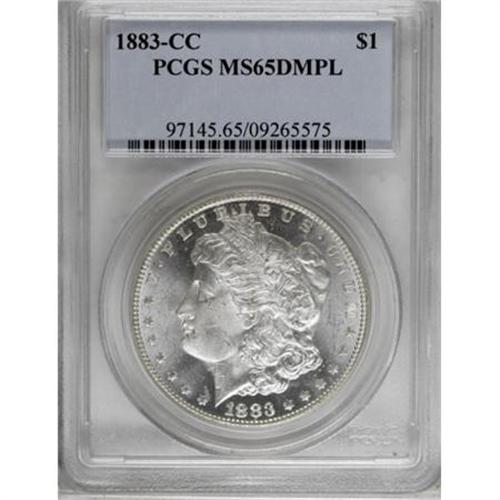 <B>1883-CC $1 MS65 Deep Mirror Prooflike PCGS.</B></I> Both sides of this flashy Gem show excellent reflectivity and a measure of frost on the devices, though the reverse has better contrast. A touch of hazy peach-tinged patina graces both sides of this attractive piece, which comes from an issue popularized by the GSA sales.<BR><I>From The Mario Eller Collection, Part One.</B></I><BR><BR><b>Shipping:</b> Coins & Currency (<a target="_blank" href="http://www.heritageauctions.com/common/shipping.php">view shipping information</a>)