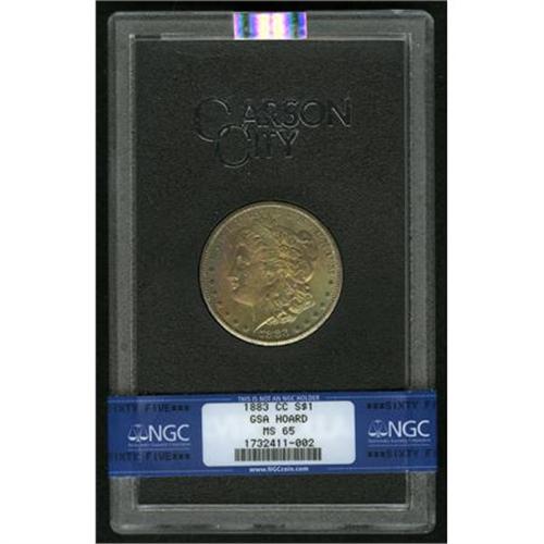<B>1883-CC $1 MS65 NGC.</B></I> NGC Census: (3322/846). PCGS Population (6306/1650). Mintage: 1,204,000. Numismedia Wsl. Price for NGC/PCGS coin in MS65: $344. (#7144)<BR><BR><B>Coin Engraver:</B> George T. Morgan<BR><BR><b>Shipping:</b> Coins & Currency (<a target="_blank" href="http://www.heritageauctions.com/common/shipping.php">view shipping information</a>)