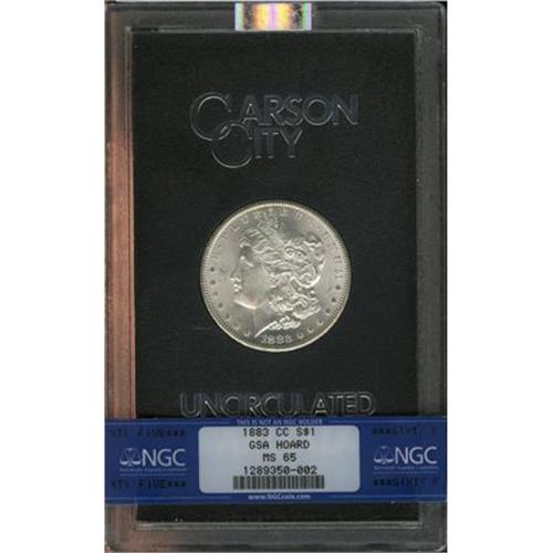 <B>1883-CC $1 MS65 NGC.</B></I> NGC Census: (3372/867). PCGS Population (6388/1682). Mintage: 1,204,000. Numismedia Wsl. Price for NGC/PCGS coin in MS65: $335. (#7144)<BR><BR><B>Coin Engraver:</B> George T. Morgan<BR><BR><b>Shipping:</b> Coins & Currency (<a target="_blank" href="http://www.heritageauctions.com/common/shipping.php">view shipping information</a>)