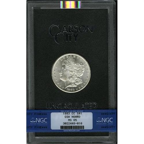 <B>1883-CC $1 MS65 NGC.</B></I> NGC Census: (3389/877). PCGS Population (6435/1706). Mintage: 1,204,000. Numismedia Wsl. Price for NGC/PCGS coin in MS65: $335. (#7144)<BR><BR><B>Coin Engraver:</B> George T. Morgan<BR><BR><b>Shipping:</b> Coins & Currency (<a target="_blank" href="http://www.heritageauctions.com/common/shipping.php">view shipping information</a>)